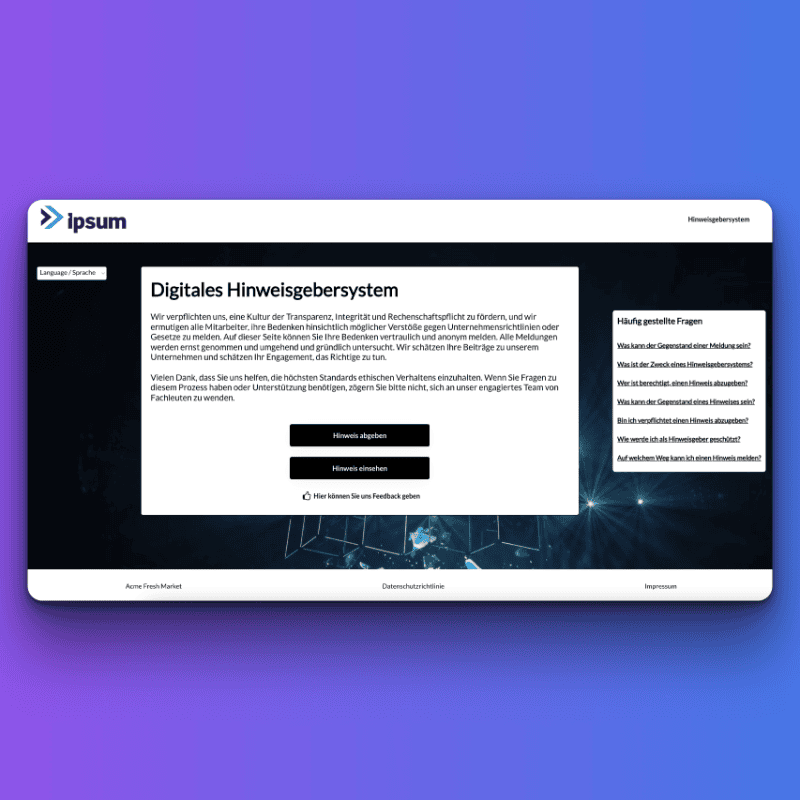 whistly ist eine innovative Lösung, die Unternehmen dabei unterstützt, die EU-Whistleblower-Richtlinie zu erfüllen. Unsere Plattform bietet einen sicheren und benutzerfreundlichen Meldekanal für Mitarbeiter, um Missstände zu melden.